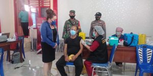 Foto: Ketua DPD Nasdem Minut Peggy Rumambi saat di lokasi vaksinasi Desa Batu MINUT, VIRALBERITA.NET — DPD Partai Nasional Demokrasi (Nasdem) Kabupaten