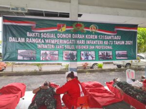 MINUT, VIRALBERITA.NET — Dalam rangka Hari Infantri ke 73 Korem 131/Santiago melalui Kodim 1310 Bitung gelar bhakti sosial Donor darah bekerjasama dengan