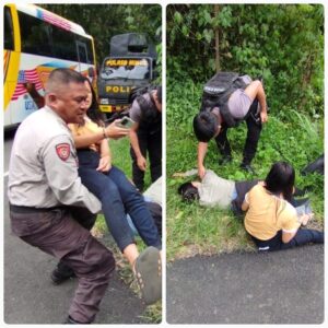 #Polisi Sahabat Kita MINUT, VIRALBERITA.NET — Samapta Polres Minahasa utara saat sementara patroli melakukan penanganan TPKP Kecelakaan Lalu lintas (Lakalantas) kepada 2